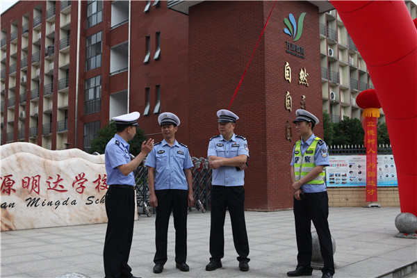 6月7日上午,支队长徐春波、副支队长臧干军深入市一中、万源明达等高考考点,实地督导高考交通安保工作。