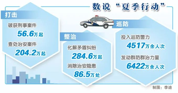 夏季治安打击整治行动实现预期目标 破获刑事案件56.6万起 查处治安案件204.2万起 消除治安隐患86.5万处