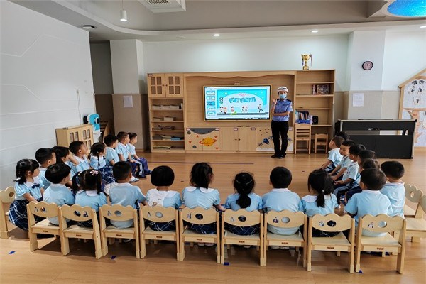 为进一步加强幼儿交通安全教育,切实提高幼儿的交通安全意识和自我保护能力,保障幼儿的出行安全,在“六一”国际儿童节来临之际,高新大队民警走进辖区荣盛花语幼儿园开展交通安全宣传活动。