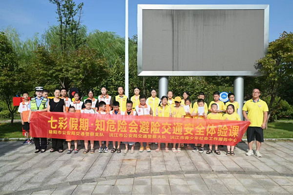 2024年秋季开学前夕,沅江交警大队联合社区和青少年服务中心志愿者,分期分批组织城区中小学生到交通安全教育警示基地,开展“七彩假期知危险 会避险”交通安全宣传主题活动,上好下学期交通安全第一课。