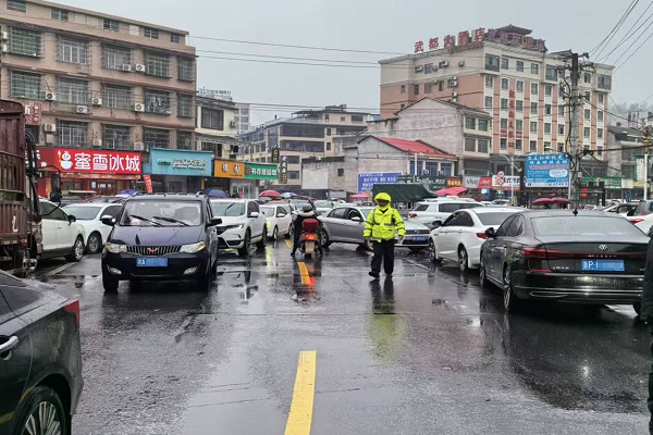 2月2日是正月初五,也是春节长假的第六天,断断续续的冷雨已经下了两天,让室外气温降至0℃左右。为积极确保广大群众安全出行,桃江县公安局交通警察大队全体民辅警持续坚守路面一线,无论是在热闹非凡的城区商街,还是在川流不息的国省干线,亦或是年味浓郁的农村地区,都有他们朴实的身影在闪动,而他们身上的警服也成为了春节期间最温暖的“平安服”和“暖心服”,让人们在喜庆的节日氛围中感受到了浓浓的安全感。