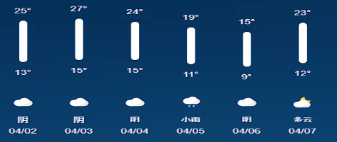据气象部门预测,假期期间我市天气以阴雨天为主,最高气温15至24摄氏度,最低气温9至15摄氏度,风力保持在1至3级左右,昼夜温差较大。4月5日小雨天气,会使路面湿滑,车辆制动距离增加,车辆易打滑,导致追尾、侧翻等事故发生风险上升,降雨天气对道路交通安全的不利影响不容忽视。