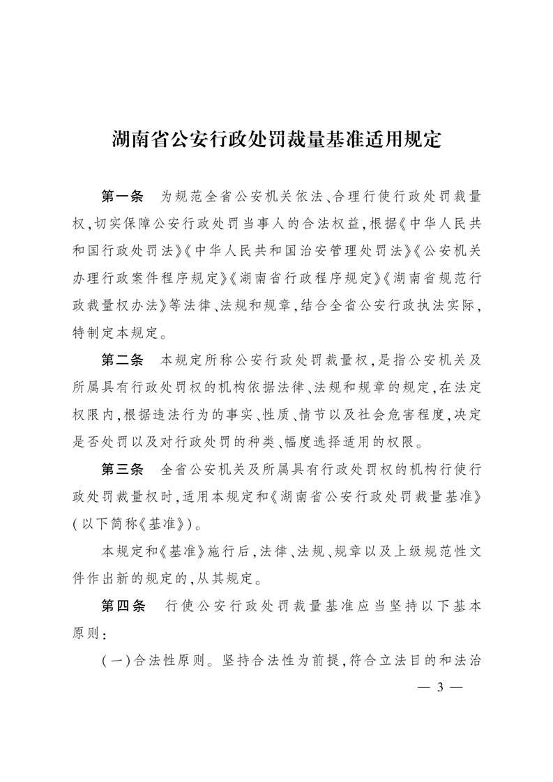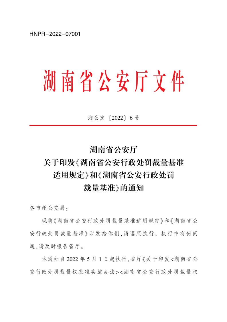 湖南省公安厅 关于印发《湖南省公安行政处罚裁量基准 适用规定》和《湖南省公安行政处罚 裁量基准》的通知